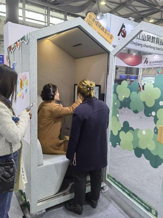 学习品质多维辅导系统、情绪疏导系统、身心反馈放松训练系统、心理自助系统在E7馆亮相,备受公众关注,大量人群前来参观体验;华师心理云平台、心理知识科普海报、华东师范大学心理学体验馆的视频在电子大屏上无间断展示,吸引许多专业人士前来了解咨询。