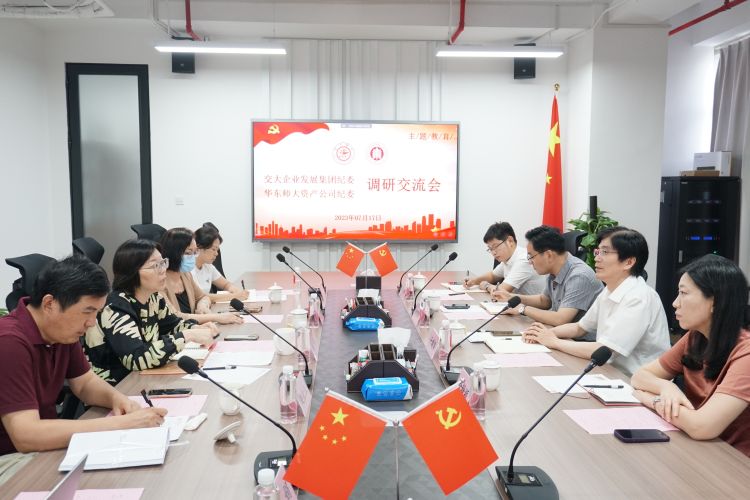为深入开展学习贯彻习近平新时代中国特色社会主义思想主题教育,推动学校所属企业纪检工作高质量发展,7月17日下午,上海交大企业发展集团有限公司党委副书记、纪委书记干建华带队前来调研交流。双方纪委委员及相关人员参加交流学习。会议由华东师范大学资产经营有限公司党委副书记、纪委书记郦妍主持。