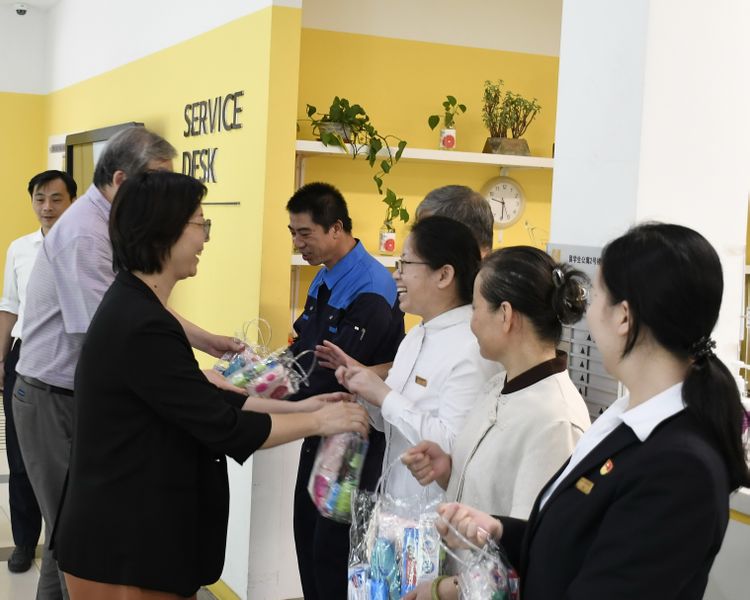 7月19日,上海华东师大资产经营有限公司总经理兼党委副书记李群带队开展“送清凉”活动,为高温天气下仍然坚守岗位的一线职工送上夏日清凉和组织关怀。
