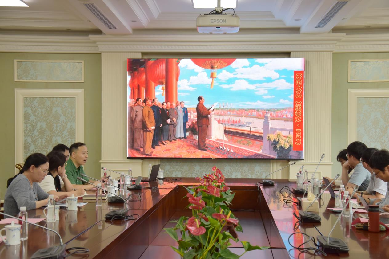 华东师范大学历史系副研究员刘建平受邀作主题为“1949:中华人民共和国的建立”的党史专题讲座,以《开国大典》油画作为切入点,介绍了油画从第一版到第四版的变化及其背后的历史故事,深入剖析了新中国成立前后复杂的国际国内环境,阐述了新政协会议召开的历程以及1949年建立的新中国的性质,再现了中国共产党筚路蓝缕奠基立业的伟大功绩。