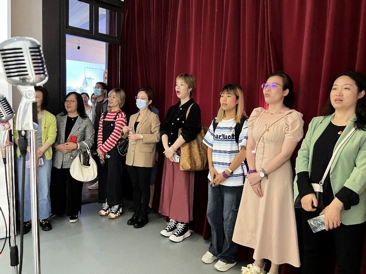 在“复兴·颂”红色文化展示空间中,大家在虚实结合的场景中,在AR、VR、雷达感应等智能设备的辅助下,沉浸式地感受党的创建、大革命、土地革命战争、全民抗战、解放战争五个历史时期在黄浦留下的红色印迹。活动采用了角色扮演的互动形式,让支部党员体验了从中国共产党建立到新中国成立的红色革命剧本。大家成为了红色历史中的一员,扮演那个时代的学生、工人、歌唱家、党的地下工作者、解放军战士等角色,体会着不同角色工作的艰辛与不易,感受着他们内心所散发出巨大的爱国主义力量。这种强烈的代入感,让红色文化教育更为直观、更具感染力。