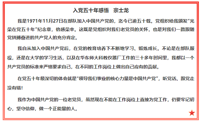 一枚小小的纪念章,承载的却是光荣与梦想、责任与激励。老党员宗士龙分享了他的入党经历和在党50年的感悟体会。
