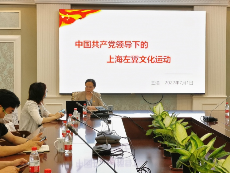 王焰以“中国共产党领导下的上海左翼文化运动”为题,围绕“高度重视文化宣传工作、推动左翼文化运动的发展、上海左翼文化运动特点”三个方面,从左翼文化运动发展的背景开始,重点讲述了二十年代末至三十年代以左联、社联为核心的左翼文化团体,在中国共产党的领导下在文学艺术、社会科学等领域中取得了辉煌的成就,为推进人民革命和抗日救亡运动的蓬勃发展,发挥了巨大作用。
