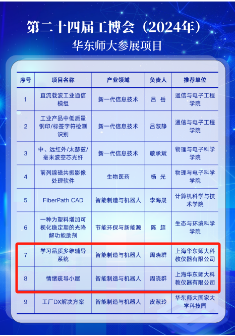 华东师大以独立展厅的形式在高校展区精彩亮相,共推出9项创新成果,涵盖生物医药、新一代信息技术、智能制造与机器人、节能环保与新能源等多个领域。其中6项成果已成功孵化为企业,并入驻学校的国家大学科技园或“大零号湾”孵化器,实现了科技成果从实验室到产业应用的华丽转身。