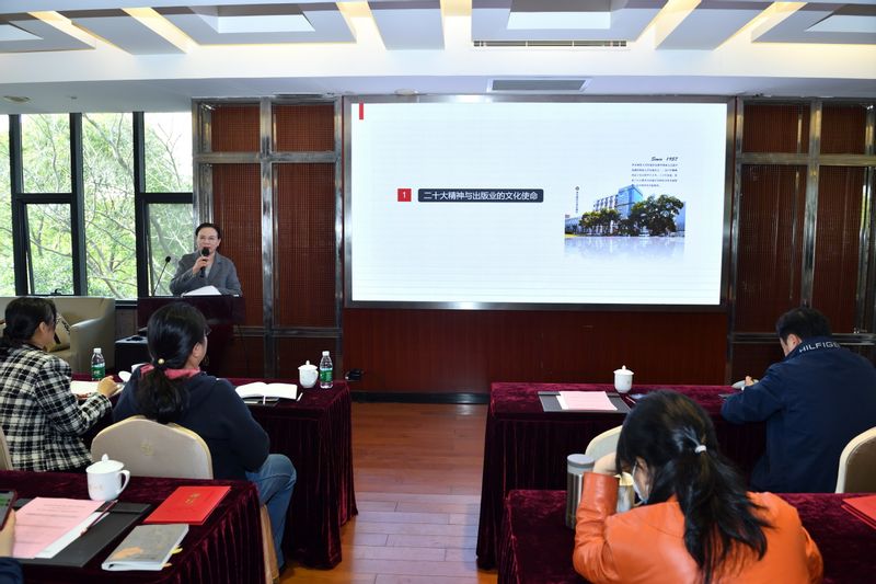 3月9日,资产经营有限公司党委书记、出版社社长王焰在出版社春季工作会议上作《做面向未来的出版》辅导报告,带领出版社领导班子成员、中层干部,认真学习党的二十大精神,明确了要进一步担当出版业的文化使命,推动出版高质量发展。