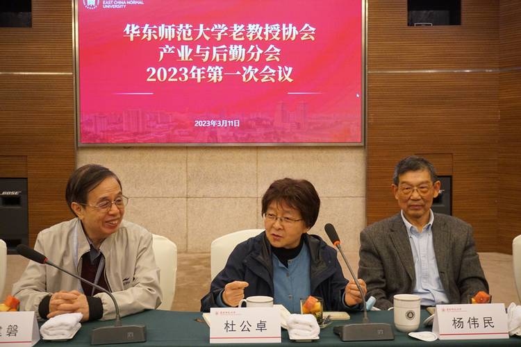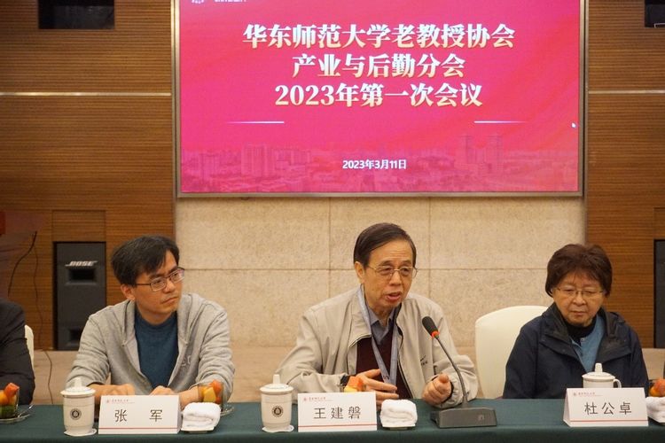 最是一年春好处,微微清风、暖暖花香。在华东师范大学老教授协会的支持和指导下,3月11日上午,华东师范大学老教授协会产业与后勤分会2023年第一次会议在普陀校区逸夫楼多功能厅举行。上海市老教授协会会长王建磐,我校老教授协会会长杜公卓、副会长兼秘书长杨伟民,学校老干部党委书记、老龄办主任张军,后勤保障部党委书记魏勇,资产经营有限公司党委副书记、总经理李群应邀出席会议,会议由产业与后勤分会副会长曹敏主持。老校长张瑞琨作为华大集团首任董事长以特邀嘉宾身份出席。