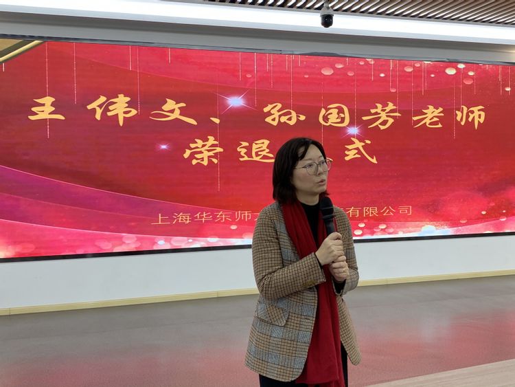 日前,华东师范大学资产经营有限公司部门工会为公司2022年度退休老师王伟文、孙国芳举办了一场温馨的荣退仪式。公司党委副书记、总经理李群,党委副书记、纪委书记郦妍,副总经理沈小光及公司全体员工悉数到场。