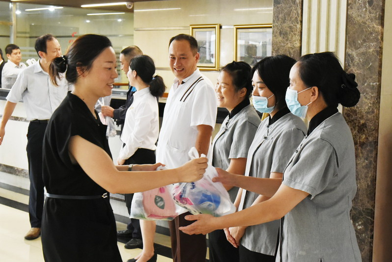 在华申公司,公司总经理胡平,公司党委副书记、纪委书记郦妍前往各营业点看望慰问了客房、工程、安保、厨房等高温岗位的一线员工。叮嘱大家在坚持做好疫情防控工作的同时,也要注意自我防护,防止高温中暑,并要求在继续做好夏季防暑降温和劳动保护工作的同时,严格落实各项劳动保护措施,确保职工的安全与健康。