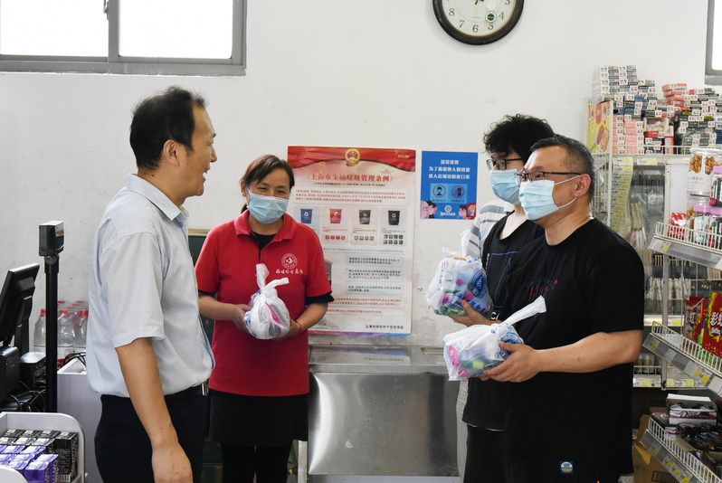 在丽娃商场,公司总经理胡平、副总经理沈小光对商场员工在疫情防控关键时刻为保障学校师生生活需求,放弃休假提前到岗的奉献精神表示赞扬,并叮嘱他们在抓好安全生产的同时,做好防暑降温工作。